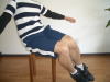 スノーボーダーのためのトレーニング スノーボードを楽しむためには道具も大切ですが、体力をつけておくことも大切! 体力をつける、つまり、トレーニングが大切ということです。 滑る、飛ぶなどの技術を支えるのは(スノーボードの)専門体力です。 そして、専門体力を支えるのが基礎体力。 ここでは基礎体力に焦点を当て解説してみたいと思います。 『トレーニングの必要性が理解できた!』 という方は、目を通してみてください。 ■実践編 『トレーニングを始めてみよう!』 何となく、トレーニングを積んだほうがよさそうだ!と 思われた方もいるんじゃないでしょうか。 そこで、疑問に思うのが、 いったい、何からどう、始めたらよいのかということ。 適当にやるより、ある程度基本を知ったほうが・・・ という方はこの先もお読みください。 とにかくやってみたい! という方は、飛ばしてくださいね。 まずは、大きな筋肉から鍛えていきましょう。 大きな筋肉とは、太ももの筋肉、腹筋、背筋、胸の筋肉などです。 これは、ダイエットをする上でも、何らかの目的でスポーツクラブでのトレーニングをするときにも共通して言えることです。 それは、なぜか。 答えは、効果が出るのが早いからです。 腿、腹筋、背筋、胸の筋肉を鍛える。 つまり、スクワット、腹筋、背筋運動、腕立て伏せ。 この4つの運動を行えば、体の筋肉の60%以上を動かし、鍛えていることになるとも言われます。 短期間に効果を得るためには必要何トレーニングのようです。 より本格的に能力を伸ばしたいという場合はもう少し細かい筋肉にもアプローチが必要ですが、 これだけの筋肉を鍛えるだけでも十分に効果を得られます。 (自分もその効果を実感した人間の一人です。) ただし、鍛える=スノーボードがうまくな! とは限りません。 実際に動ける体にしなければいけないのです。 それにはやっぱり滑ること!今まで鍛えた筋肉を実際に動かしてあげましょう。 なかなか山へ足を運べない という方は、実際にブーツをはき、板をはきスクワットをしたり、飛び跳ねたりして見ましょう。 こうすれば、実際の動きに近いトレーニングが可能です。 あなたのアイディアしだいで練習方法は無限に広がり、トレーニング効果UPも間違いなしです。 最後に、かなり本格的にレベルUPを図ろうと思うのならば、ある程度知識のある人にアドバイスをもらうなり、自分でしらべるなりして効果的なトレーニングや練習をする方が結果が早くあららわれます。 考え方や原理などはこのページでもある程度理解できると思いますし、簡単なトレーニング方法もまとめてあるので、 興味のある方は、以下を参考になさってください。 気になる部分だけでも目を通してみてくださいね。 『腰を落とした姿勢を保つ』 スポーツでよく耳にする言葉! 「腰を落としてぇっ〜!」 他のスポーツ同様、スノーボードでも大切です! はい! 太ももが水平になるくらいまで腰をおとし、背中を立てる。 この姿勢ができれば、ヒールエッジに乗れること間違いなし。 また、お腹周りを鍛えることで、切れのある動き、安定感のある動きを身につけましょう!