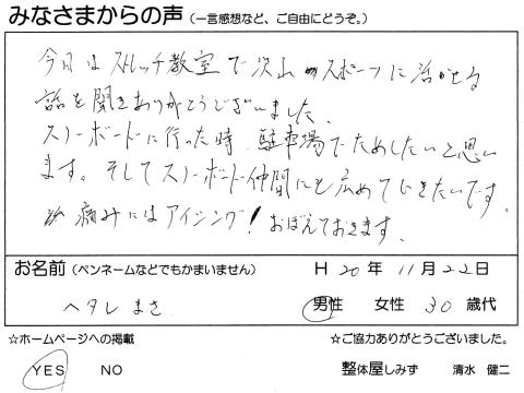 | 可児市でストレッチをするなら、整体屋しみず/身体を動かしながら行うコア・ストレッチを紹介しております。出張ストレッチ教室も開催中です。 |